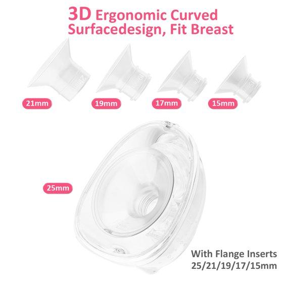 Painless and Fits Well: Comes with 25mm breast shield and 15/17/19/21mm flange inserts, suitable for different breast or nipple sizes.