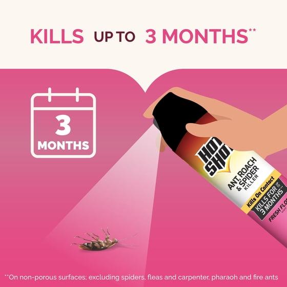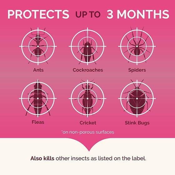 - FAST KNOCKDOWN: Kills listed insects on contact and keeps on killing up to 3 months on non-porous surfaces; excluding spiders, fleas, and carpenter, pharaoh and fire ants.
