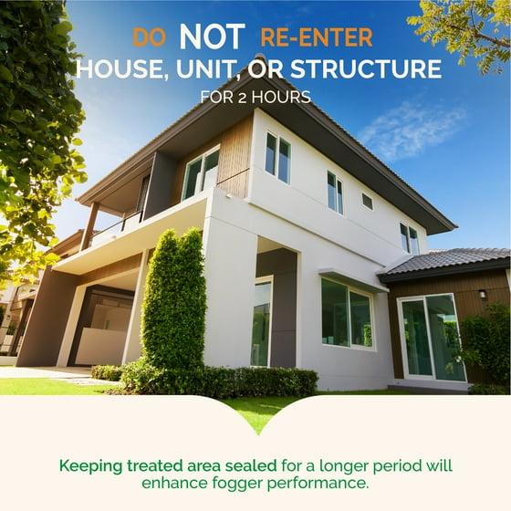 BEFORE YOU FOG • 1. OPEN cabinets, cupboards, drawers, closets and doors in areas to be treated. 2. REMOVE or cover exposed foods, dishes, utensils, food-processing equipment and surfaces. REMOVE pets and birds and COVER and turn off air ow systems in aquariums. REMOVE or COVER children’s and pet toys. COVER waxed wood oors and waxed wood furniture in the immediate area surrounding the fogger (newspaper may be used). 3. CLOSE outside doors and windows. SHUT OFF fans and air conditioners and temporarily disconnect smoke alarms. 4. TURN OFF ALL FLAMES, PILOT LIGHTS, IGNITION SOURCES and running electrical appliances that cycle off and on. Call your gas utility or management company if you need assistance. 5. DO NOT use fogger in a cabinet or under a counter or table. TO START FOGGING • 1. Place a chair, table or stand in the center of the room to be fogged. Cover with several layers of newspaper or paper towels. SHAKE WELL BEFORE USING. Tilt sprayer AWAY from face (fogger sprays up). 2. Press valve all the way down, hooking the catch. Do not inhale the spray mist. Set fogger on newspapers or paper towels and leave the premises immediately. 3. Close door(s) and hang “Fogger in Use” tag on doorknob. KEEP TREATED AREA CLOSED AND DO NOT RE-ENTER FOR AT LEAST TWO HOURS. Keeping treated area sealed for a longer period will enhance fogger performance. Vacate the treated house, individual apartment unit or other structure immediately. AFTER FOGGING• AIRING OUT: BEFORE REOCCUPYING THE AREA, OPEN ALL DOORS AND WINDOWS, TURN ON AIR CONDITIONER AND FANS AND ALLOW TREATED AREA TO AIR OUT FOR TWO HOURS. Turn on smoke alarms and aquariums. Note: When treating for fleas and ticks, clean and treat pet sleeping areas. Also treat dogs and cats with a flea and tick control product registered for use on pets before allowing them to re-enter the treated areas.