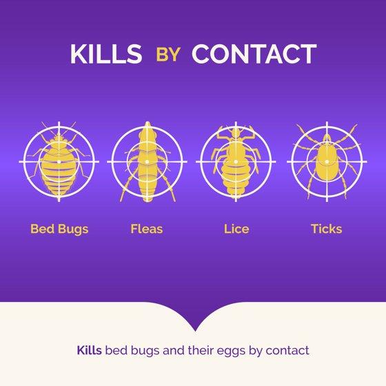 • BED BUG TREATMENT: This product kills bed bugs and bed bug eggs, as well as crawling insects, brown dog ticks, fleas, dust mites, clothes moths and carpet beetles.