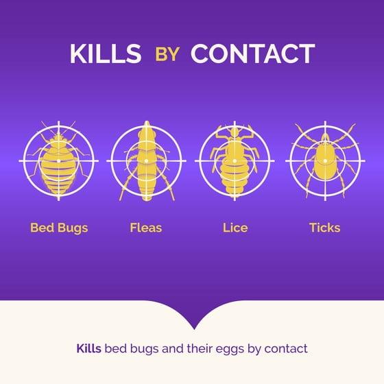 - BED BUG TREATMENT: This product kills bed bugs and bed bug eggs, as well as crawling insects, brown dog ticks, fleas, dust mites, clothes moths and carpet beetles.