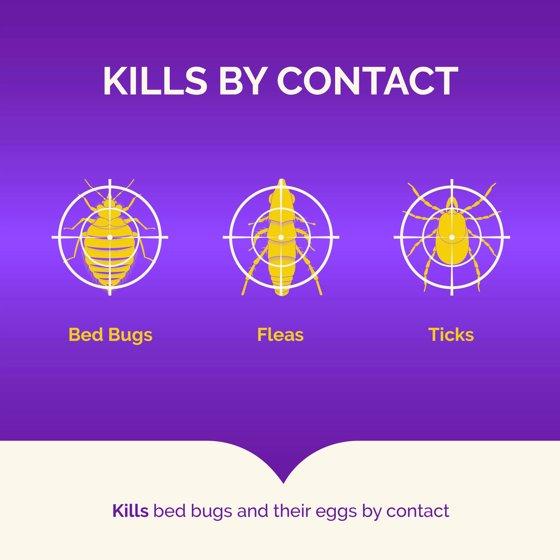 - KILLS BY CONTACT: Kills bed bugs and their eggs before they hatch; also kills fleas and ticks.