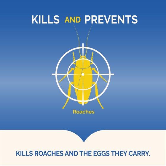 - KILLS ROACHES AND THE EGGS THEY CARRY: Quick-kill formula kills both large and small roaches where they breed indoor.