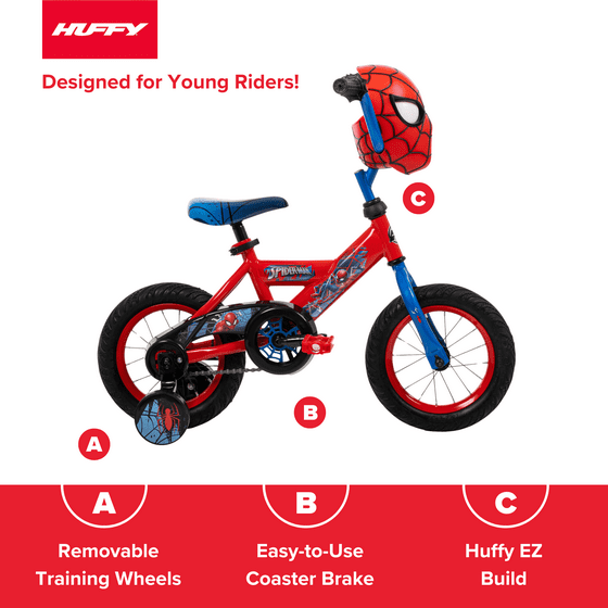 Huffy Marvel Spider-Man Bike, 12" Wheels, Toddlers Ages 3+, Training Wheels