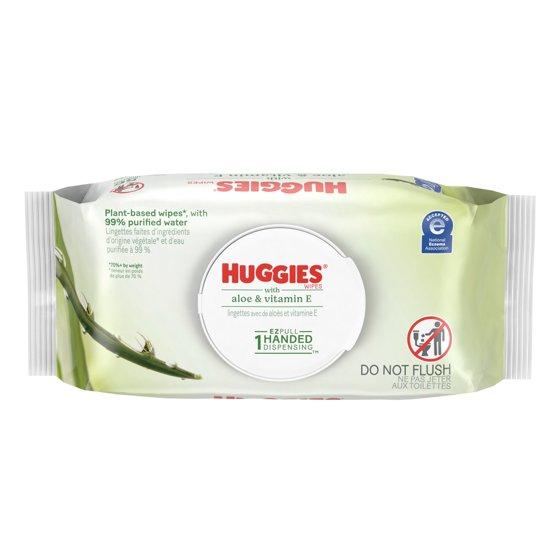 - 1 flip-top pack of 56 Huggies Wipes with Aloe & Vitamin E, Unscented (56 wipes total)