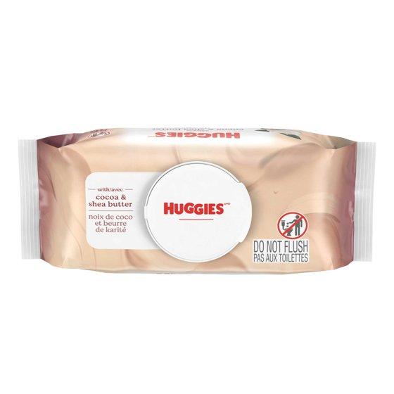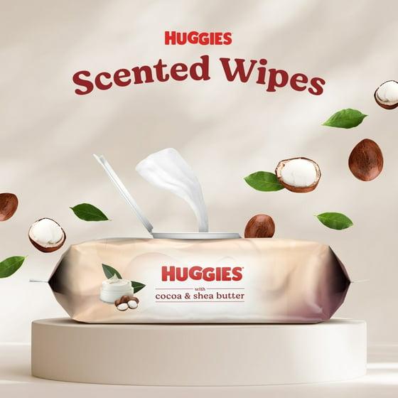 - Huggies Wipes with Cocoa & Shea Butter: 1 push button pack of 56 scented wipes (56 wipes total)