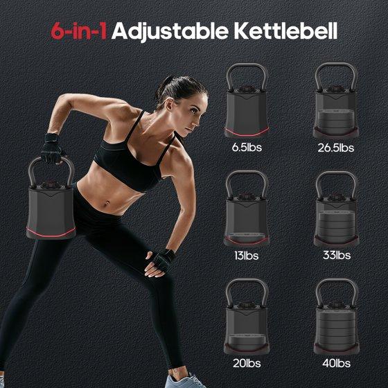 - 【All-in-One Design】- Replace 6 individual kettle bells (6.5-40LBS) with our space-saving adjustable kettlebell, offering complete weight coverage in one compact unit perfect for limited home gym spaces