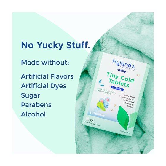 - 125 TABLETS=UP TO 62 DOSES of Hyland's Baby Nighttime Tiny Cold Tablets
