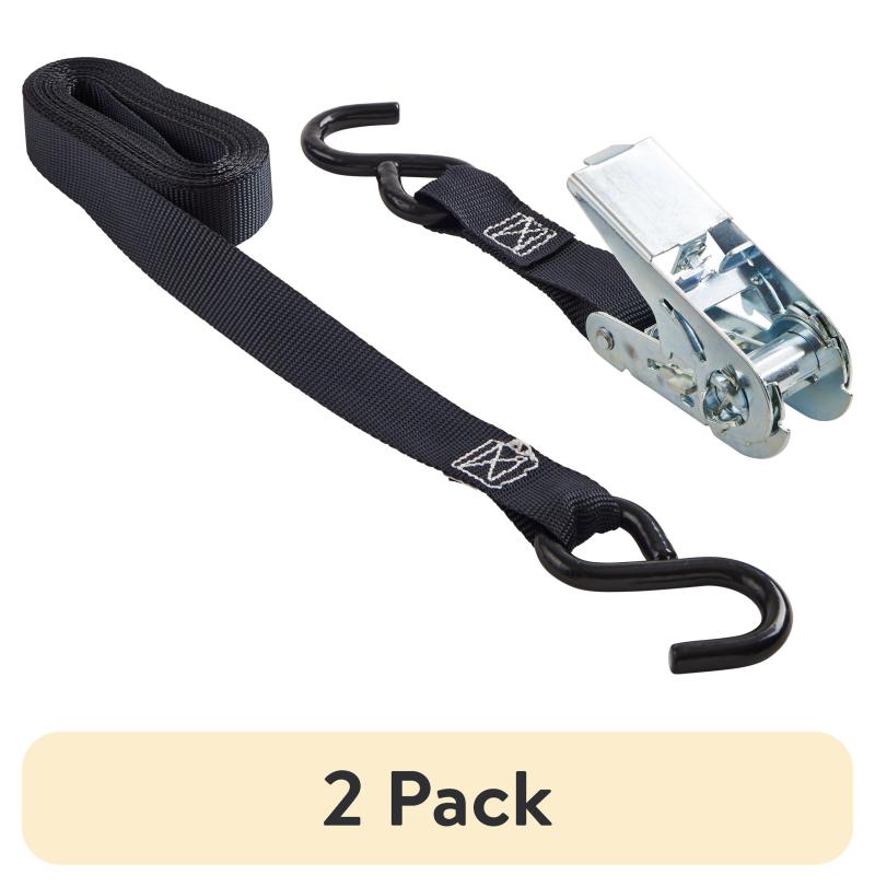 (2 pack) Hyper Tough 12 ft x 1 in Black Ratchet Tie-Down with Coated S-Hooks