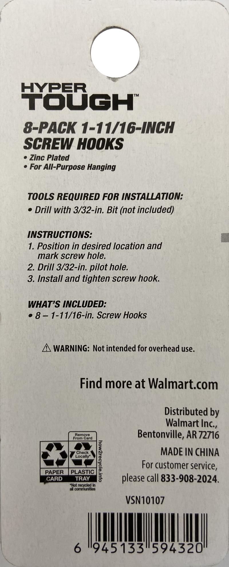 Hyper Tough Brand 1-11/16 in. Screw Hook, Zinc Plated, 8 Pack