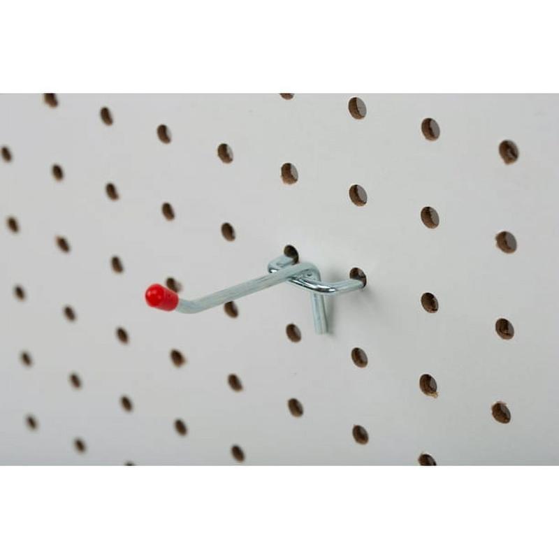 - Package includes 4 single peg hooks with a 2-inch projection, suitable for 1/4 in. or 1/8 in. peg holes with standard 1 in. spacing (pegboard sold separately).