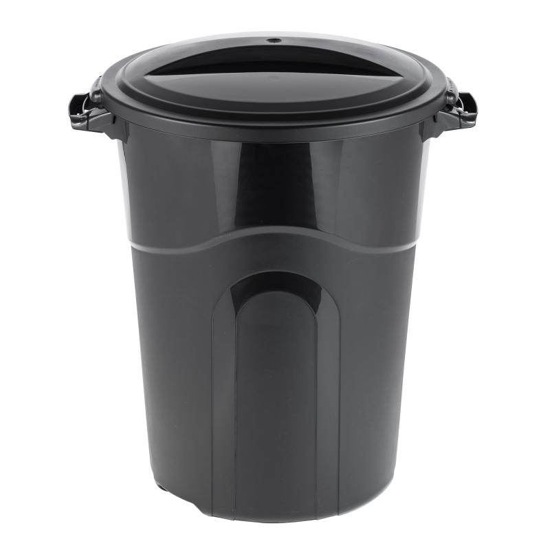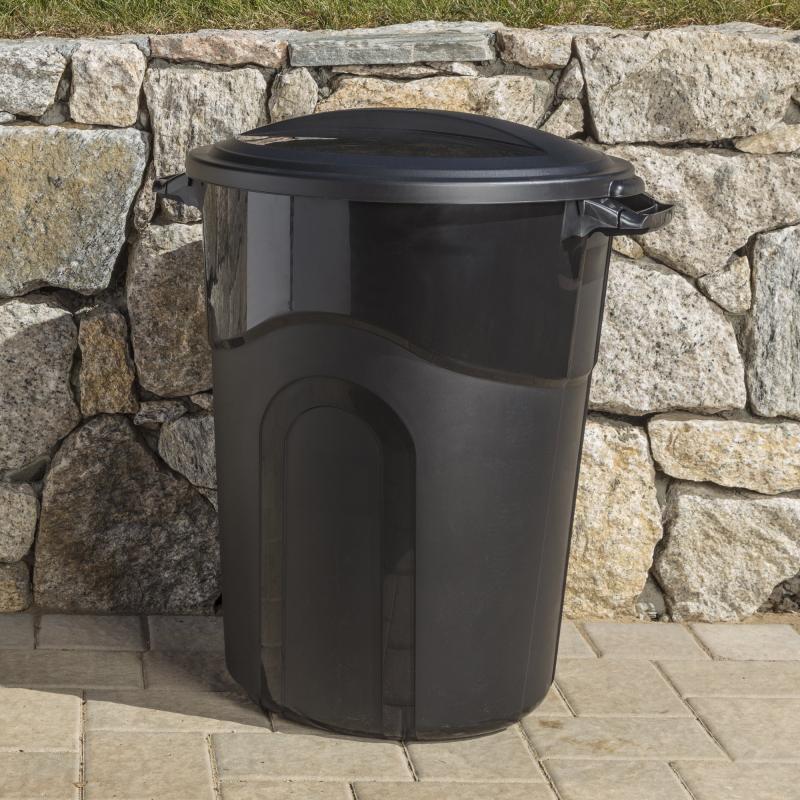 The Hyper Tough 32 Gallon Heavy Duty Plastic Garbage Can with included lid is heavy duty and perfect for your everyday waste needs. Recommended bag usage size is 33 gallon. This trash can is designed with sturdy pass through handles at the top and an additional hand groove on the bottom of the container. These features make moving this heavy duty injection molded trash can easier than ever. Attach the included lid with the predrilled holes.. The sturdy lid has a click lock, securing it tightly to the container. This waste basket is perfect for the deck, patio, garage, or office.