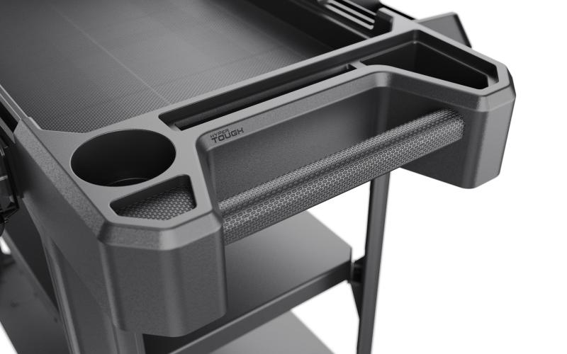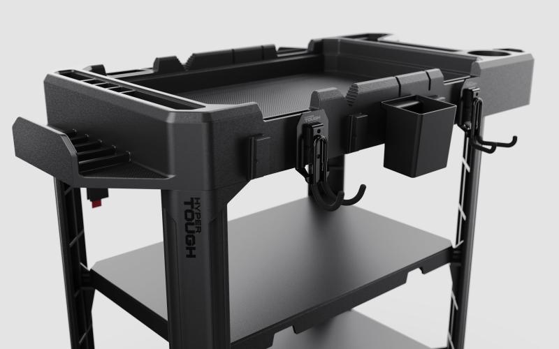 - Comprehensive Features: Includes broom storage slots, tool holders, power cord holder, parts tray, integrated lumber notch, V feature for cutting pipes, and a cup holder