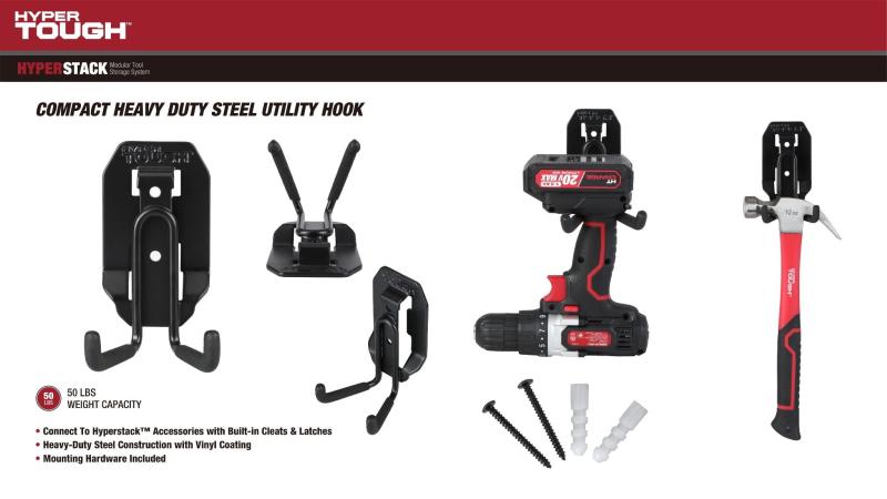 (2 pack) Hyper Tough Hyper Stack Compact Heavy Duty Steel Utility Hook, Black