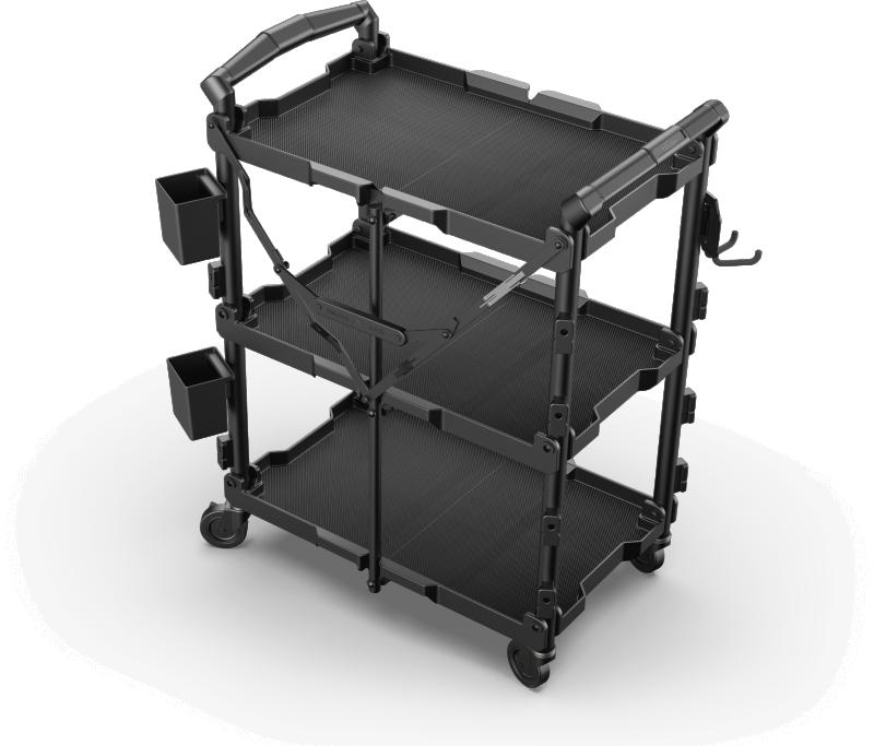 - Ergonomic Design: 3 collapsible shelves designed to offer you plenty of space when moving equipment, tools, files, garden supplies and more