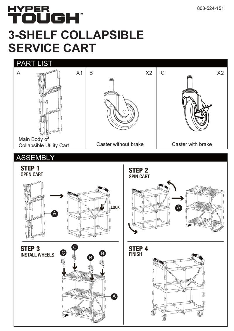 Hyper Tough Hyper Stack New Foldable Collapsible Utility Cart, Black