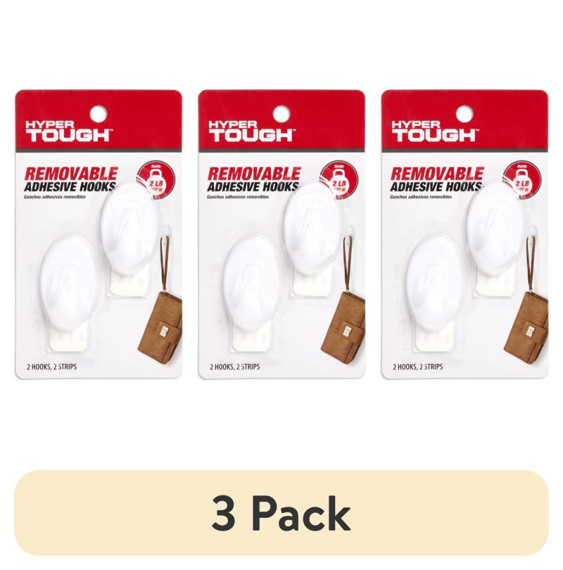 Hyper Tough medium size removable adhesive plastic hooks are the affordable and damage-free hanging option that provides excellent holding power anywhere an extra hook is needed. Great for posters, pictures with wired backs, kitchen utensils, or even jewelry. Can hold weight up to 2 pounds. These hooks are useful at home or in the classroom, and the adhesive strips secure the them to almost any surface. Hooks can be removed with ease. This value package includes 2 hooks and 2 adhesive strips.