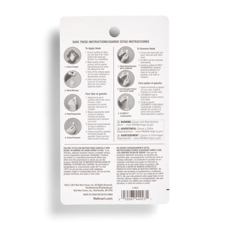 - QUICK AND EASY PEEL AND STICK HOOKS: These no-damage removable adhesive hooks can be applied to any wall surface with two provided adhesive strips