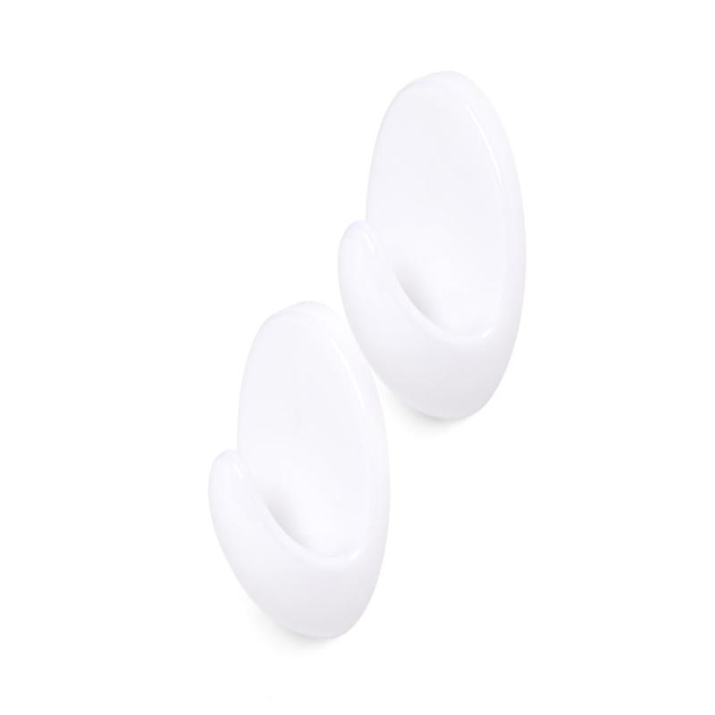 (3 pack) Hyper Tough Medium Removable Self-Adhesive Hook, Oval Plastic Hooks for Hanging Towels and Jackets, with 2 Strips, 2 lbs Capacity, White, 2 Pc