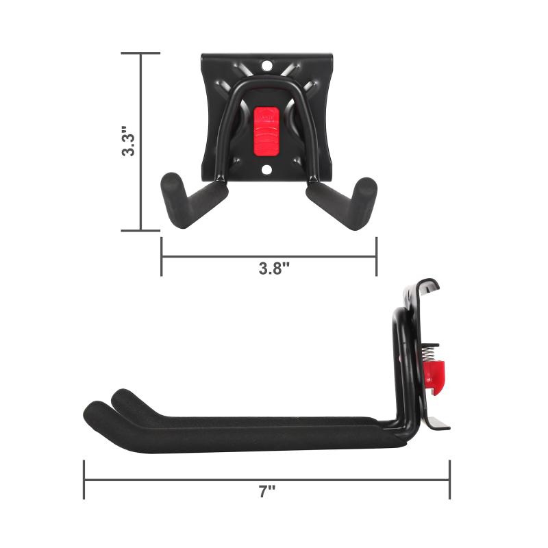 The Hyper Tough Quick-release 6-inch Straight Hook (Model 1002) is an accessory for the Hyper Tough Organizer Rail System, Snap Rail, or mount directly to the wall. If garage storage and organization is a priority for you, this 6-inch hook is a must have. It is made of metal then vinyl coated to prevent rust or scratching. The double straight hooks hold long handled tools like shovels, rakes, hoes and brooms, getting them off the floor and out of the way. When mounted correctly to the rail, this hook will hold up to 25-pounds. These Quick Release hooks are simple to remove and re-attach with the push of a button, making it easy to organize and re-organize a wide variety of items on the snap rail, freeing up valuable floor space. The 6-inch straight hook can also be installed directly on the wall. Customize the storage anywhere in your home using multiple kits and additional accessories all available at Walmart.