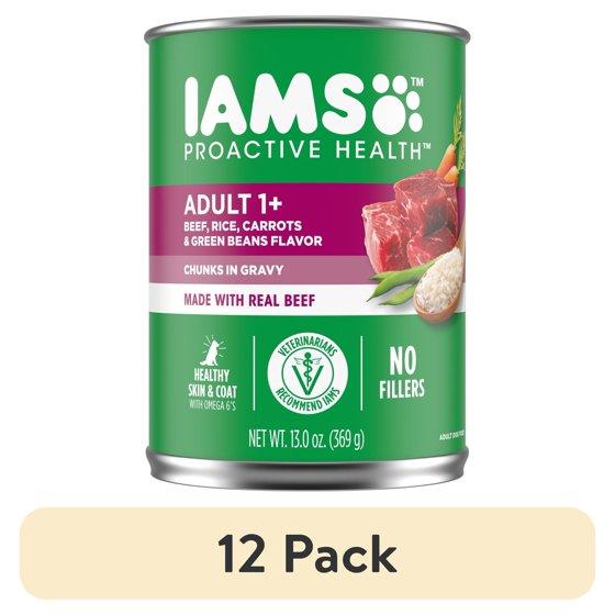 (12 pack) Iams Proactive Health Beef, Rice, Carrots, And Green Beans Gravy Wet Dog Food, 13 Oz Can