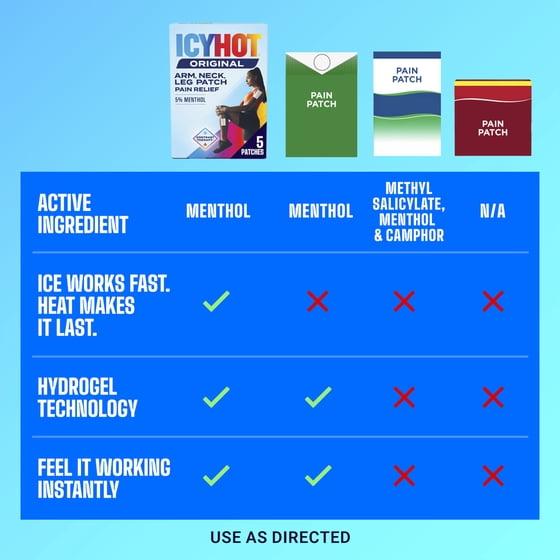 Icy Hot Original Pain Relief Patch, Medium Size Fabric Patches for Arm, Neck and Leg With Menthol 5%, Ice and Heat Contrast Therapy for Backaches, Joints, Muscle Strains and Arthritis, 5 ct.