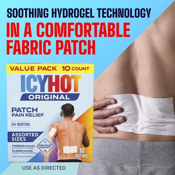 - INCLUDES: One (1) 10-count pack of Icy Hot Original Pain Relief Patch Variety Pack with 5 Medium and 5 Large Patches