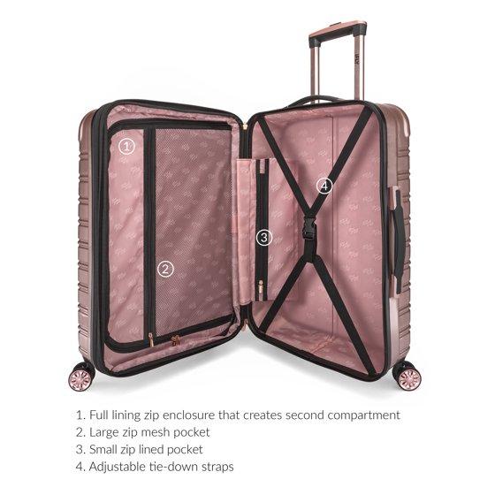 iFLY Fibertech 20" Hardside Carry-on Suitcase – Expandable Spinner Luggage for Travel, Rose Gold