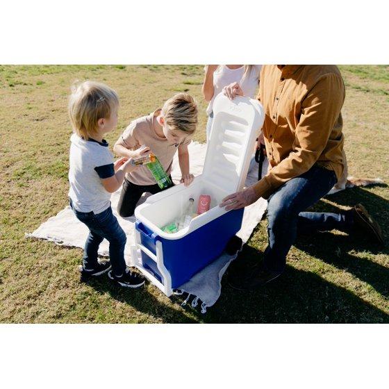 The Igloo 38 QT Wheelie Cool Hard Sided Rolling Cooler is best classic cooler on wheels! Bring your cold drinks along to any adventure or outdoor event with ease in the Wheelie Cool 38-Quart Cooler by Igloo. This cooler can hold up to 53 cans, giving you plenty of space to store a variety of drinks for everyone at your party. A tow handle makes it easy to pull this cooler along behind you even when it is filled to the brim. When you leave the house for adventures, don't leave your Wheelie Cool from Igloo behind. This traditional Igloo wheeled cooler makes taking drinks and snacks to the beach, a picnic or the kids' games a breeze. Ideal for a couple or small family. We were the first to market with a wheeled cooler and we're still the leader in wheeled coolers today! Color: Blue. Made of Polyethylene.