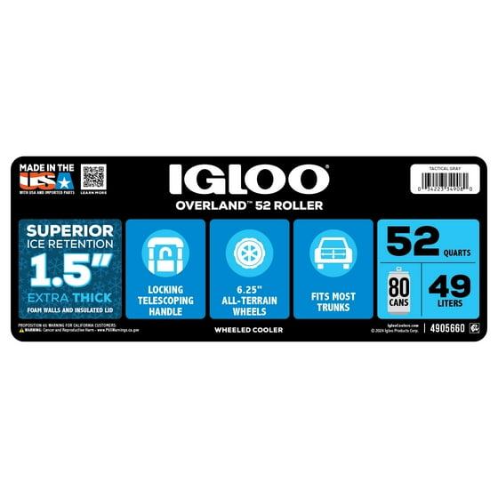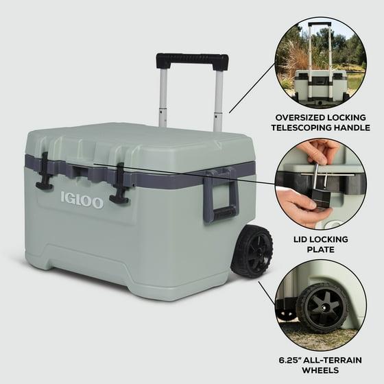 - Igloo Overland 52 QT Rugged Roller Ice Chest Cooler With Wheels, Gray:
