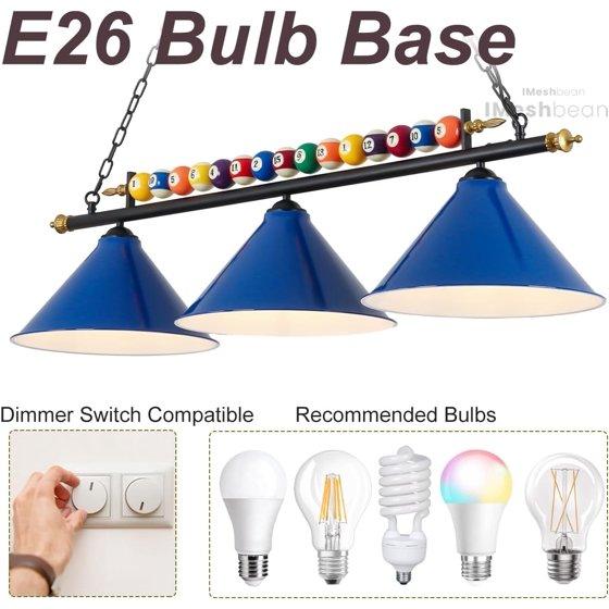 - Pool Table Light Fixture Bulb Base: E26;