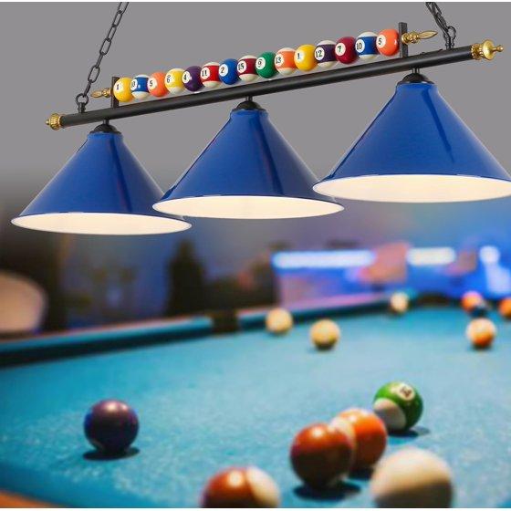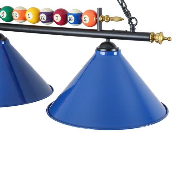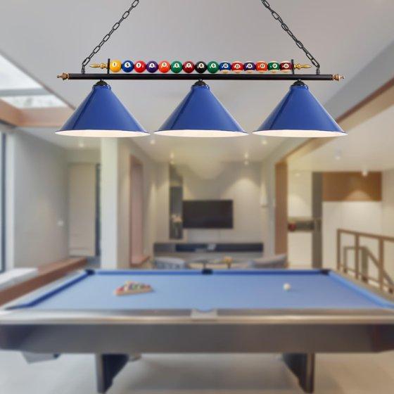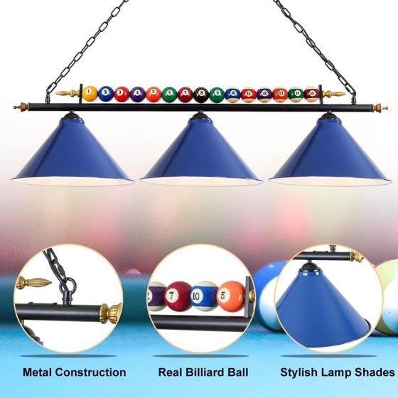 iMeshbean 47" Hanging Pool Table Lights Billiard Pool Table Lighting Fixtures for 7' 8' Table Real Billiard Ball Design Ceiling Lamp 3 Metal Lamp Shades for Game Room Pool Table Billiards (Blue)