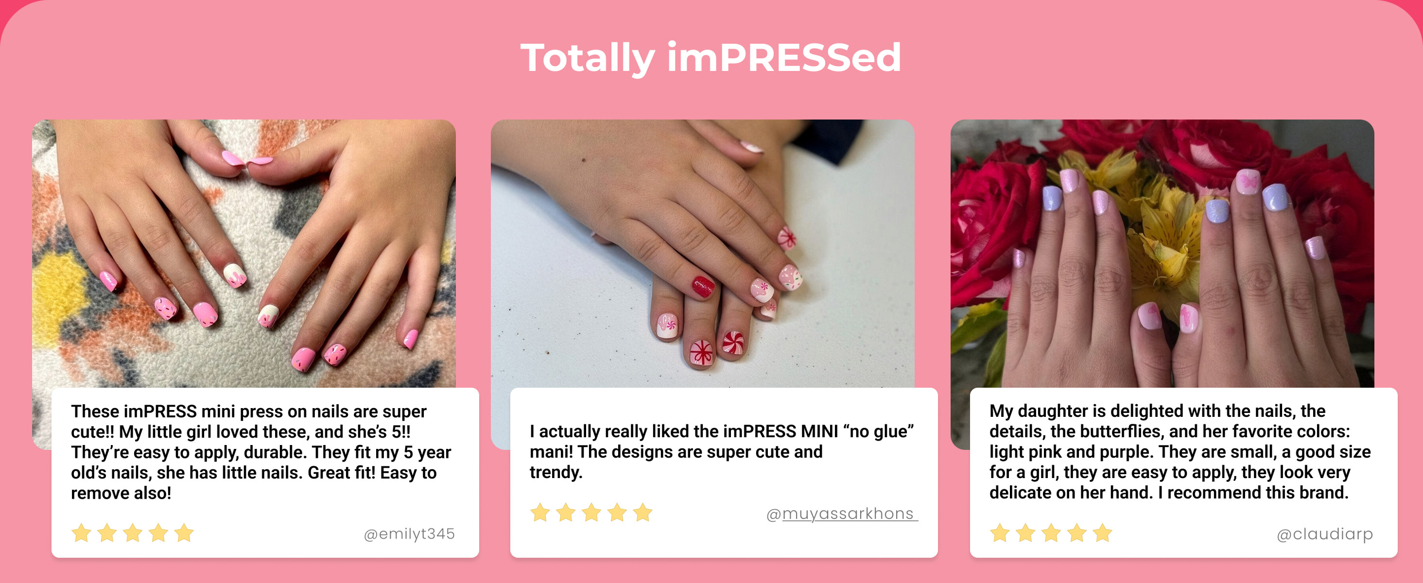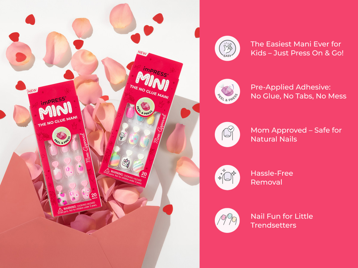imPRESS MINI Press On Nails for Kids, ‘Fairy Song’, Pink, Squoval, 20 Count