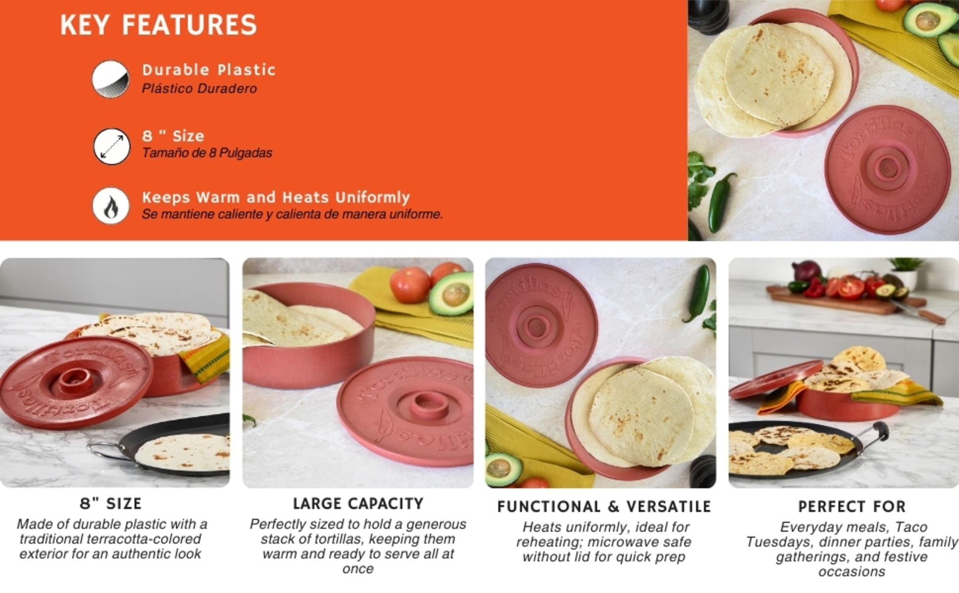 - EVEN HEATING: Keeps tortillas warm, heats uniformly, and is great for reheating, offering authentic design and microwave-safe convenience without the lid