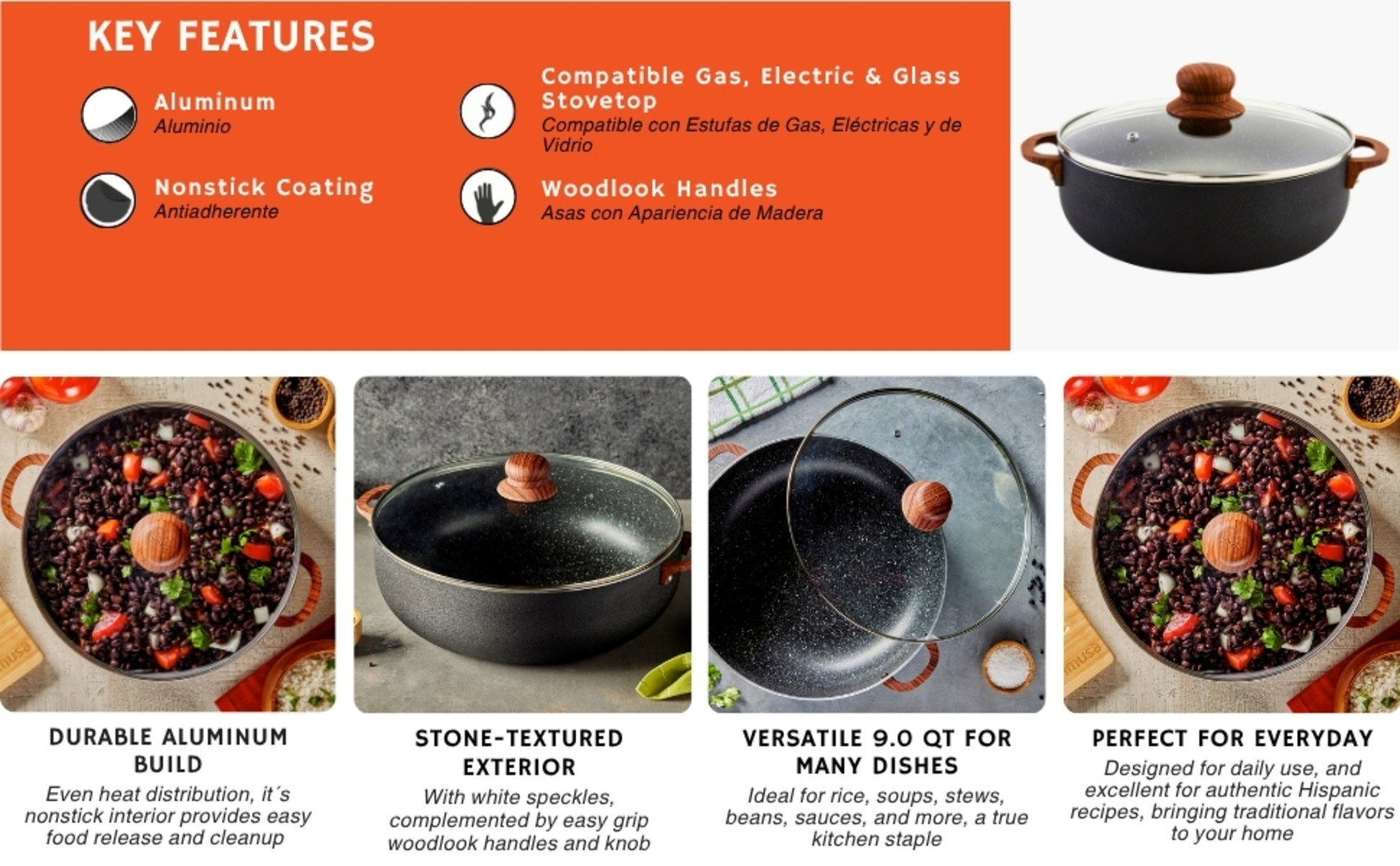 - LARGE COOKING CAPACITY: This caldero has a capacity of 9 quarts, making it ideal for substantial meal sizes effortlessly, providing extensive versatility in various cooking applications