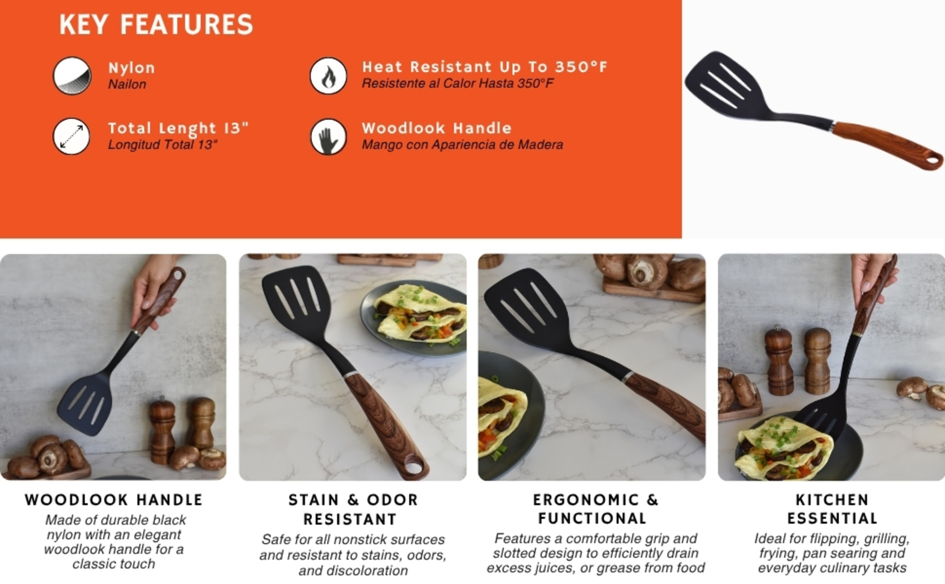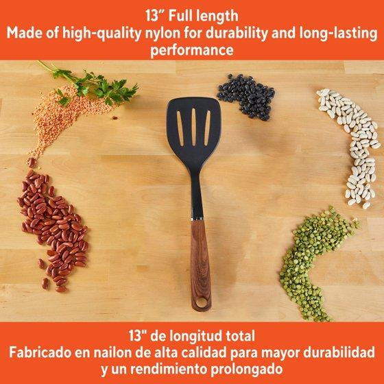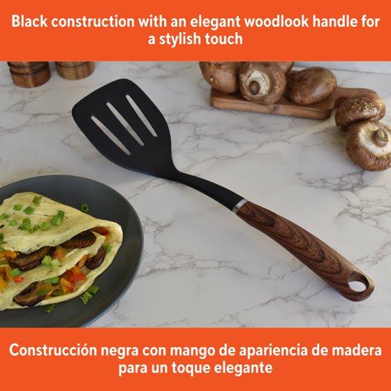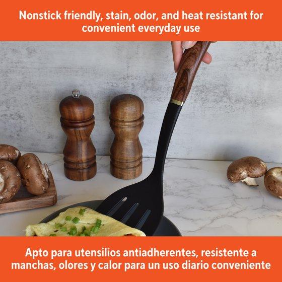 - MADE OF DURABLE NYLON: This black spatula with a wood look handle is lightweight and nonstick friendly, it is stain, odor, and heat resistant, making it a reliable utensil in your kitchen