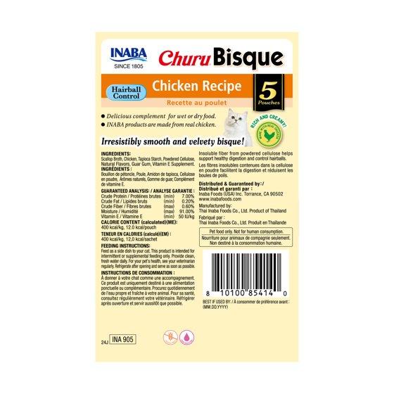 - RICH & CREAMY: Churu Bisque Hairball Control is a rich and creamy purée, like our original Churu lickable cat treats, but with a thicker consistency that is perfect to serve as a side dish or to sneak medication in