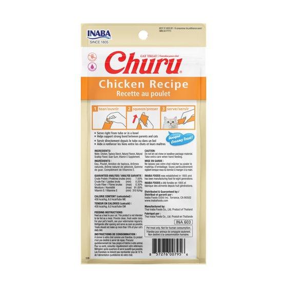 INABA Churu Cat Treats, Creamy Lickable Purée Cat Treat/Topper with Vitamin E, 0.5 Ounces Each Tube, 4 Tubes, Chicken Recipe
