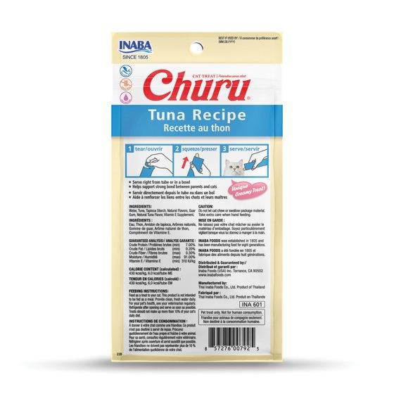 INABA Churu Cat Treats, Creamy Lickable Purée Cat Treat with Vitamin E, 0.5 Ounces Each Tube, 4 Tubes, Tuna Recipe