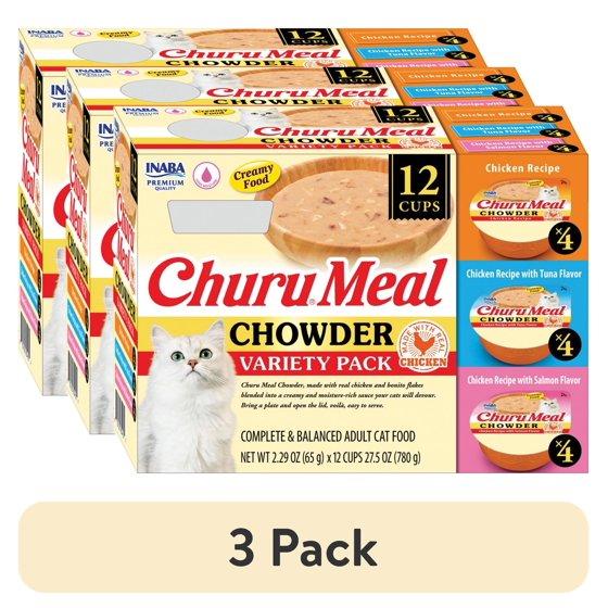 (3 pack) INABA Churu Meal Chowder Adult Wet Cat Food, 2.29 oz cup, 12-count, Chicken Variety Pack