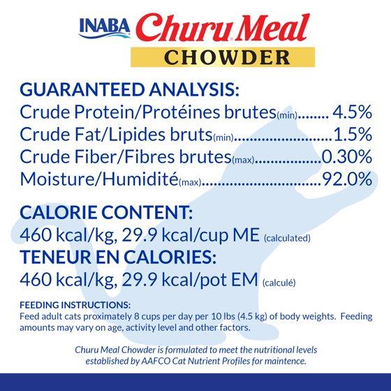 - COMPLETE & BALANCED: Our Premium Quality Chowder is a 100% complete & balanced wet cat food for adult cats. From the makers of their favorite cat treats, INABA Churu, you can trust that your cat is getting all the nutrition they need