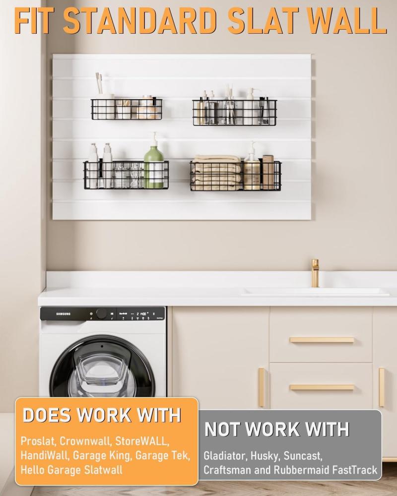 - FIT STANDARD SLATWALL: The INCLY slat wall wire basket are designed to fit standard slatwall panels like Proslat, Crownwall, StoreWALL, HandiWall, Garage King, Garage Tek, Hello Garage Slatwall. DO NOT FIT Brands: Gladiator, Husky, Suncast, Craftsman and Rubbermaid FastTrack. Please doule check your slat wall before ordering
