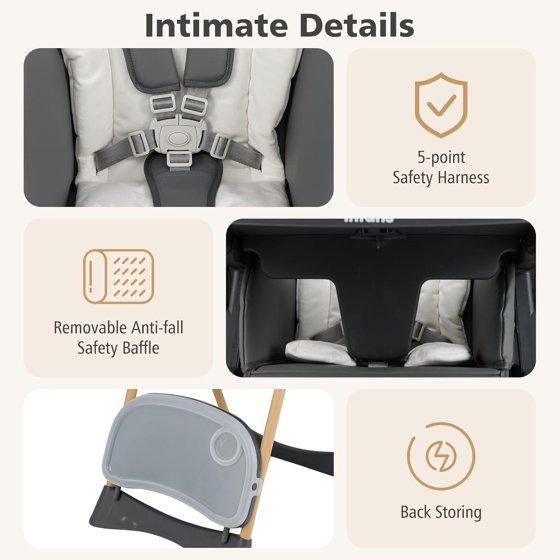 - Safety First & Easy to move: To prevent the baby from rolling over due to play or external force, the baby travel high chair adopts a pyramid structure as the main framework, providing stable protection. 5-point braces and safety flaps can help hold the baby in place and prevent the baby from falling out of the chair.