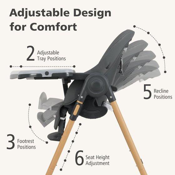 - Adjustable & Multifunctional Design: INFANS foldable highchair features multiple adjustments to meet various needs. 3 recline positions, 3 footrest positions, 2 tray positions and 6 height positions allow you to accommodate your baby’s growth