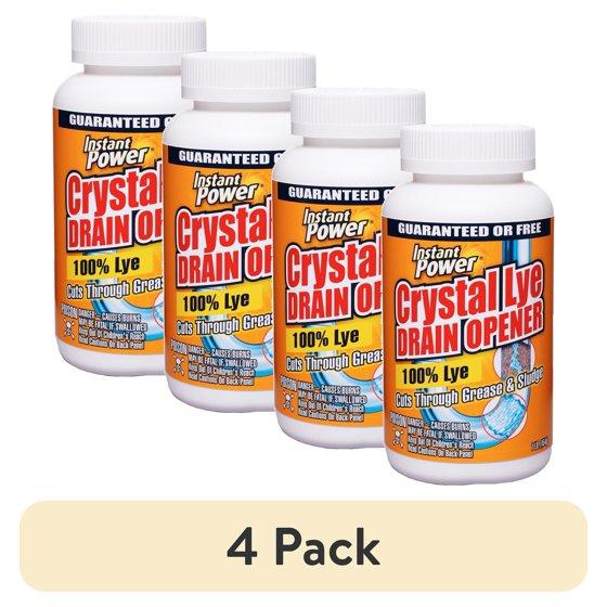 (4 pack) Instant Power Crystal Lye Drain Opener, 1 Count, 16 oz