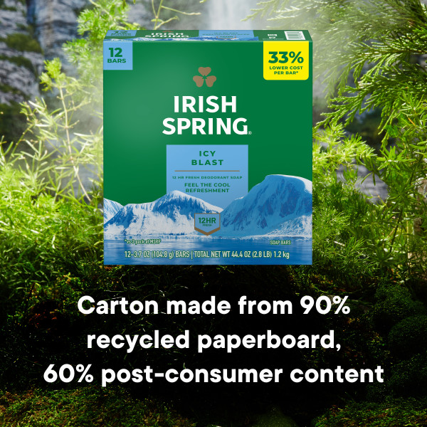 - What’s Included: Twelve 3.7 oz soap bars of Irish Spring Icy Blast Deodorant Bar Soap for Men