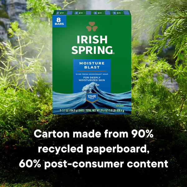 - What’s Included: Eight 3.7 oz soap bars of Irish Spring Moisture Blast Deodorant Bar Soap for Men
