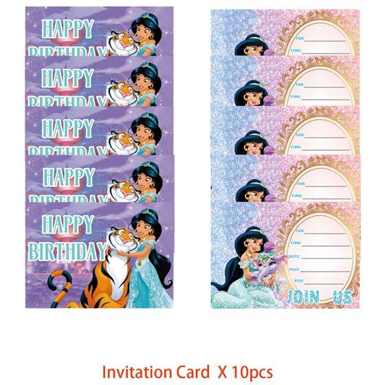 - 【High Quality Card Stock】Our birthday Jasmine Aladdin Princess invitations are printed on high quality card stock to ensure only the highest quality Jasmine Aladdin Princess party invitations for your special day!