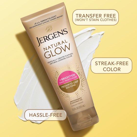 - GRADUAL TANNING LOTION - Our Jergens Natural Glow Daily Moisturizer will gradually enhance and deepen your natural skin tone to provide hassle-free, streak-free color
