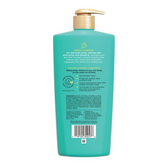 - JERGENS IS LOTION YOU CAN FEEL GOOD ABOUT - Our dermatologist-tested Jergens Shea Fusion Tropical Escape scented body lotion is cruelty free, paraben free and contains no artificial dyes